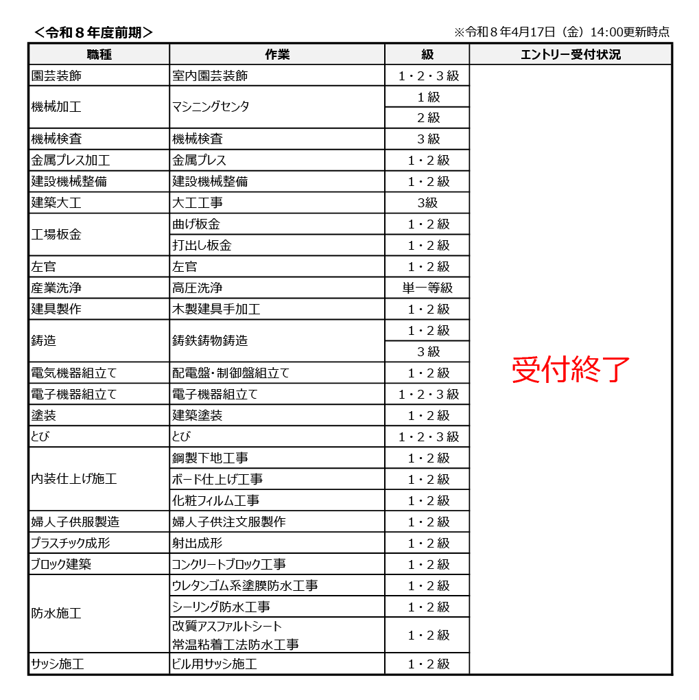 【個人情報の取り扱いについて】ご記入いただきました個人情報については、技能検定の受検申請以外の目的には使用いたしません。